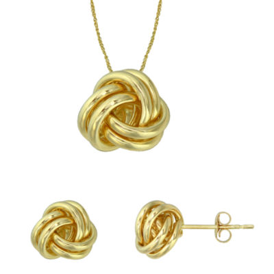 10k Yellow Gold Love Knot Pendant Necklace And Stud Earring Set