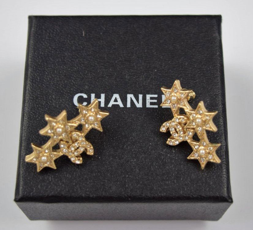 Nwt Chanel Cc Crystal Star Drop Earrings 570 00 Picclick